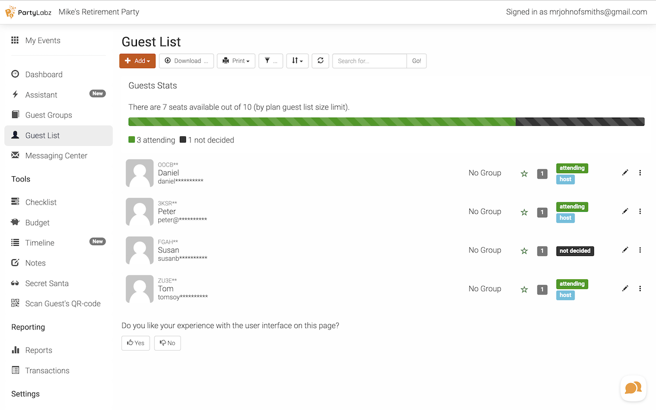 Easily see who's coming and gather other important information invitees.