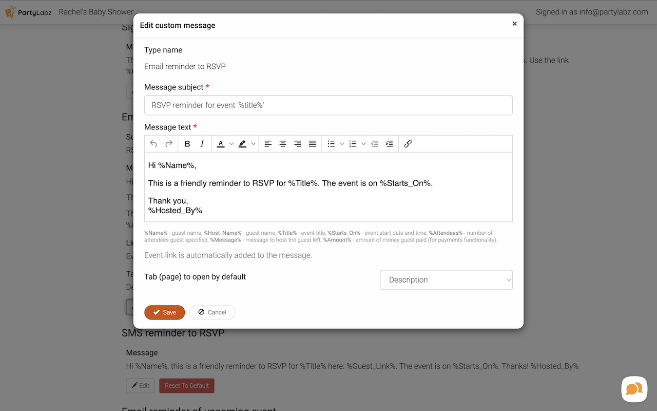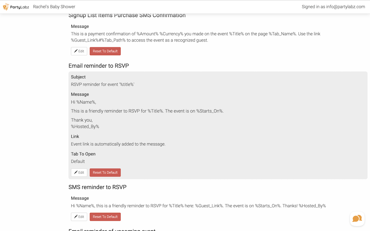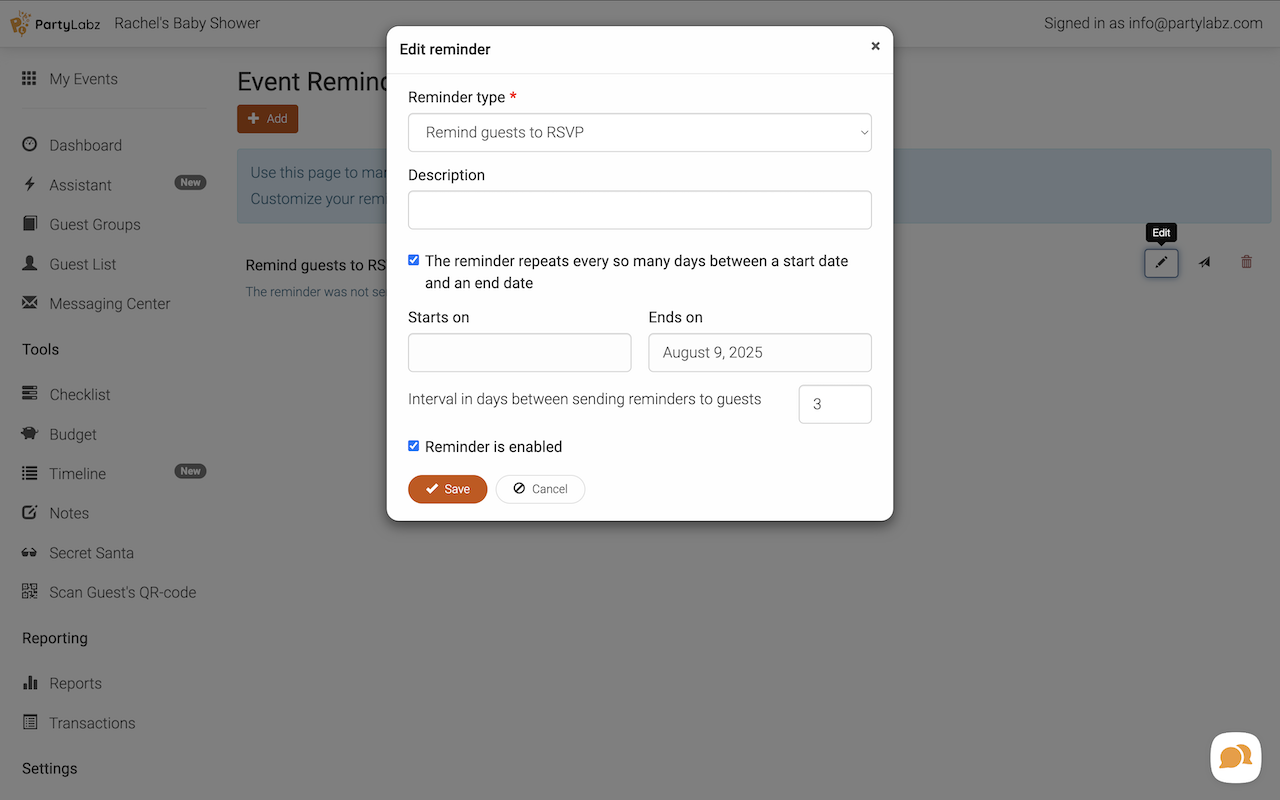 Never worry about chasing responses again! PartyLabz automatically manages reminders for guests who haven't RSVPed yet. Here's how it works: