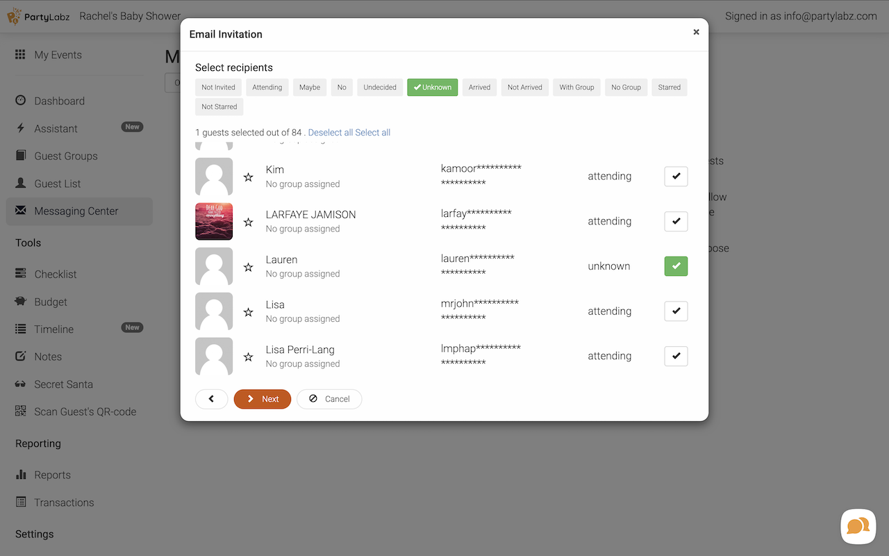 PartyLabz smartly tracks who has already received invitations, making it easy to manage large guest lists in stages. Here's how it works: